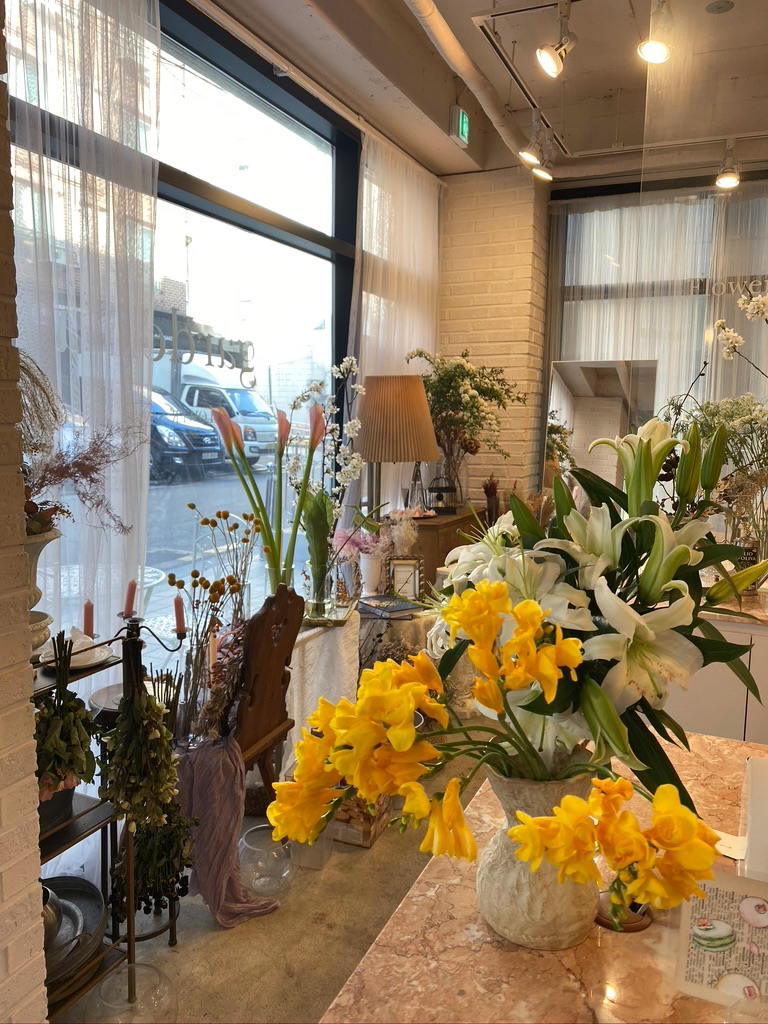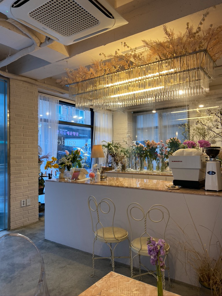 여기를 들어가서 커피 시키고 애기하고 있으면 사장님이 그날에 맞는 꽃을 주세요.
