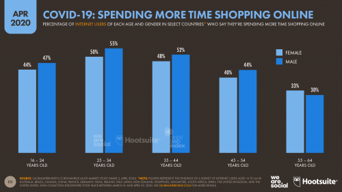 코비드 19, 코로나 사태 이후에 사람들이 어디 디바이스에서 시간을 많이 보냈는지 나태내는 자료입니다.